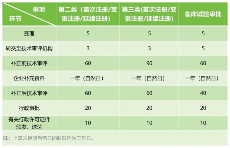 具體來(lái)說(shuō),第三類(lèi)醫(yī)械產(chǎn)品的注冊(cè)申報(bào)時(shí)間是要長(zhǎng)于第二類(lèi)醫(yī)療器械的,以下為國(guó)家藥監(jiān)局器審中心發(fā)布的法定時(shí)限表: