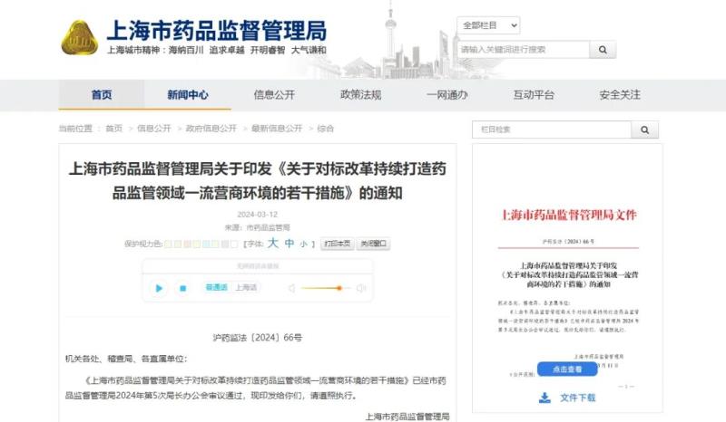 3月12日,上海市藥監(jiān)局發(fā)布《關于對標改革持續(xù)打造藥品監(jiān)管領域一流營商環(huán)境的若干措施》(以下簡稱《若干措施》),共制定了17條舉措,助力生物醫(yī)藥產業(yè)高質量發(fā)展。