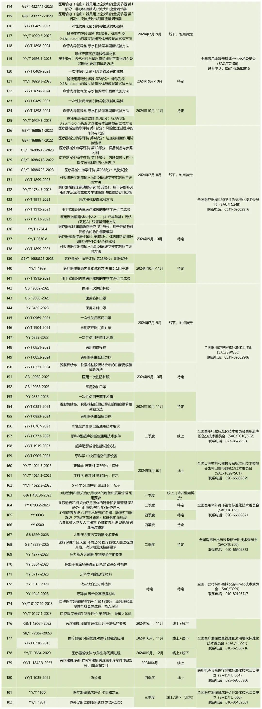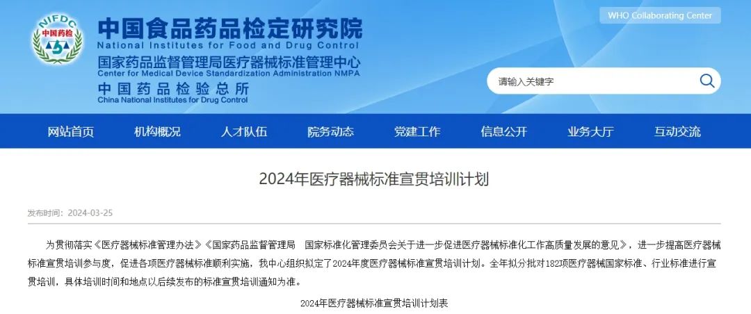 3月25日,國家藥監(jiān)局醫(yī)療器械標準管理中心發(fā)布《2024年醫(yī)療器械標準宣貫培訓計劃》,擬分批對182項醫(yī)療器械國家標準、行業(yè)標準進行宣貫培訓,具體安排如下: