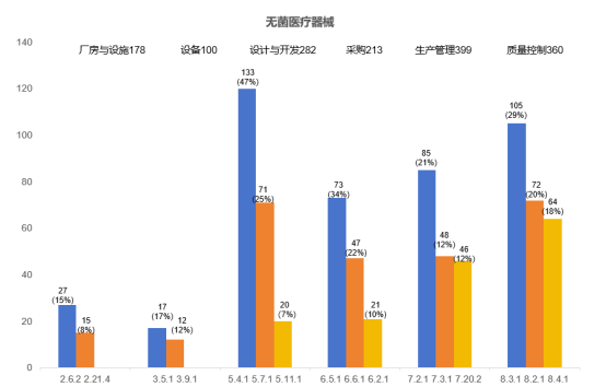 近日,“上海器審”公眾號公開了上海市2023年度無菌醫(yī)療器械現(xiàn)場檢查問題匯總及分析,其中提到,2023年度,上海市無菌醫(yī)療器械現(xiàn)場核查合計發(fā)現(xiàn)缺陷1666項。其中廠房與設(shè)施(178項次)、設(shè)備(100項次)、設(shè)計開發(fā)(282項次)、采購(213項次)、生產(chǎn)管理(399項次)、質(zhì)量控制(360項次)占比超九成,本期文章我們將上海器審總結(jié)的這六個方面的關(guān)鍵風(fēng)險點及常見核查問題進行轉(zhuǎn)載,以供相關(guān)企業(yè)參考。