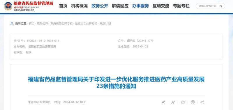 近日,福建省藥監(jiān)局發(fā)布《進一步優(yōu)化服務推進醫(yī)藥產業(yè)高質量發(fā)展23條措施》,以提高藥品、醫(yī)療器械、化妝品審評審批效率和服務水平,促進醫(yī)藥產業(yè)優(yōu)化升級和高質量發(fā)展。