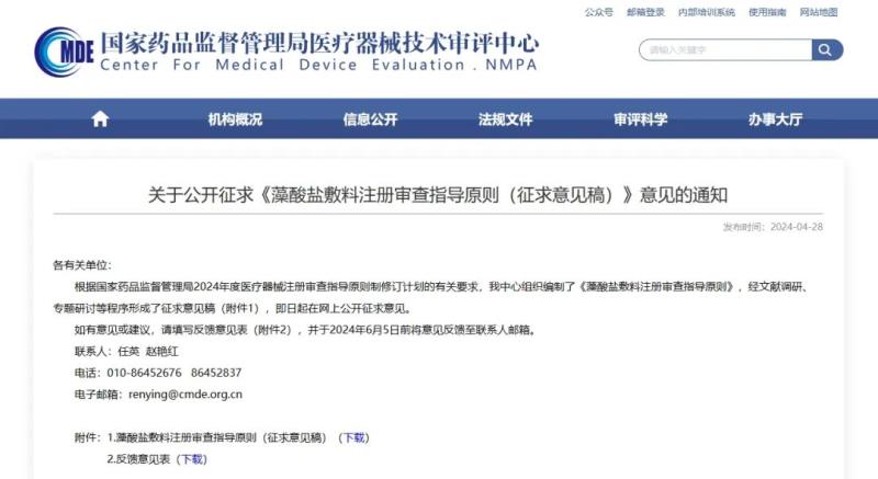 4月28日,國家藥監(jiān)局器審中心發(fā)布《藻酸鹽敷料注冊審查指導(dǎo)原則(征求意見稿)》(以下簡稱《指導(dǎo)原則》),并向社會公開征集意見。