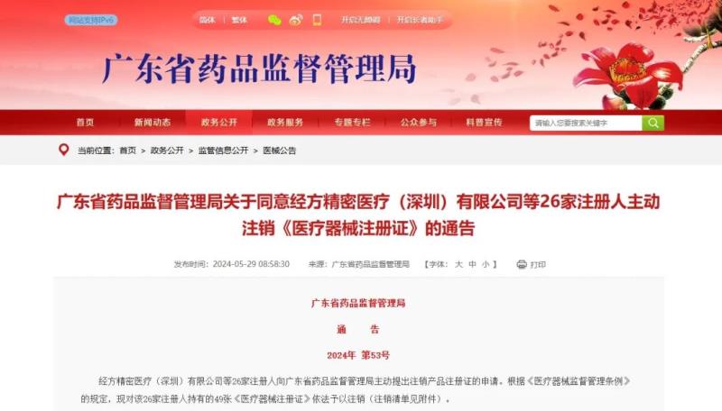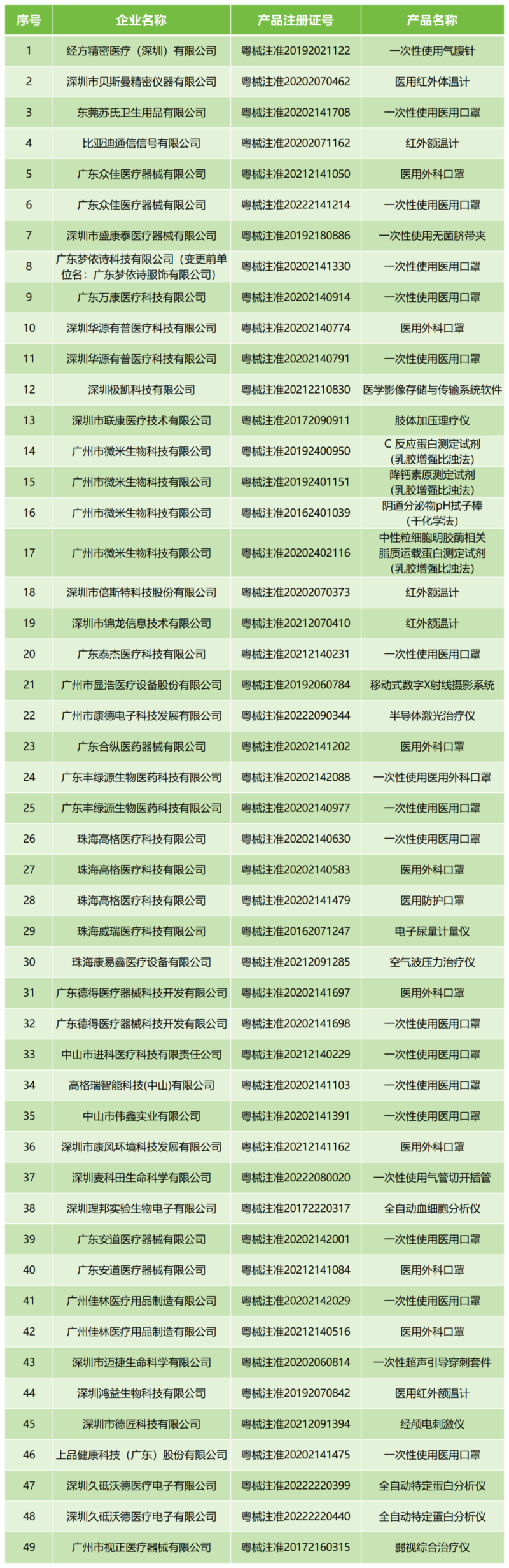 5月29日,廣東藥監(jiān)局發(fā)布通告稱,深圳市貝斯曼精密儀器有限公司、比亞迪通信信號有限公司等26家注冊人向廣東省藥品監(jiān)督管理局主動提出注銷產(chǎn)品注冊證的申請,我們通過查看附件發(fā)現(xiàn),注銷產(chǎn)品以醫(yī)用口罩居多,還有醫(yī)用紅外體溫計(jì)、半導(dǎo)體激光治療儀、空氣波壓力治療儀、弱視綜合治療儀等共49款產(chǎn)品。具體清單如下: