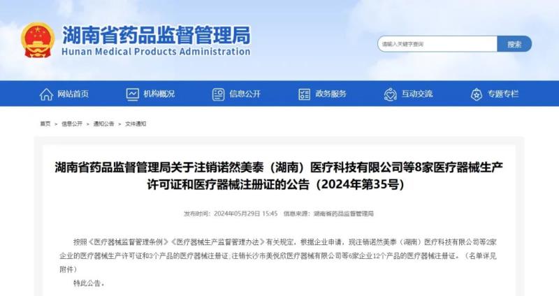 近日,湖南省藥監(jiān)局發(fā)布一則注銷公告,其中提到,按照《醫(yī)療器械監(jiān)督管理?xiàng)l例》《醫(yī)療器械生產(chǎn)監(jiān)督管理辦法》有關(guān)規(guī)定,根據(jù)企業(yè)申請(qǐng),該局已注銷諾然美泰(湖南)醫(yī)療科技有限公司等2家企業(yè)的醫(yī)療器械生產(chǎn)許可證和3個(gè)產(chǎn)品的醫(yī)療器械注冊(cè)證;注銷長沙市美悅欣醫(yī)療器械有限公司等6家企業(yè)12個(gè)產(chǎn)品的醫(yī)療器械注冊(cè)證。我們通過查看附件發(fā)現(xiàn),本次注銷的產(chǎn)品中有多款重組膠原蛋白產(chǎn)品,比如重組膠原蛋白溶液、重組膠原蛋白凝膠、重組膠原蛋白液體敷料等,具體明細(xì)如下:
