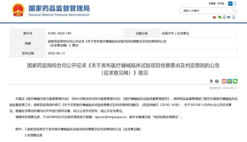 近日,國家藥監(jiān)局發(fā)布《關(guān)于發(fā)布醫(yī)療器械臨床試驗項目檢查要點及判定原則的公告(征求意見稿)》(以下簡稱《公告》),并向社會公開征求意見。