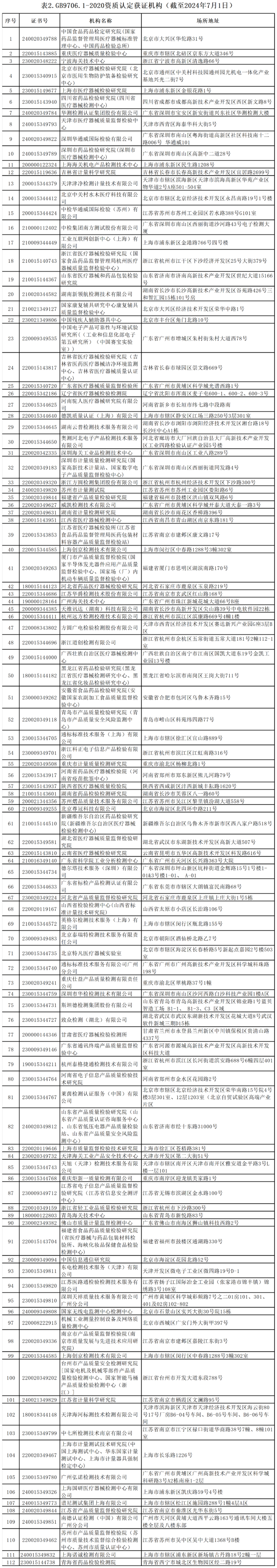↑ GB 9706.1-2020資質(zhì)認(rèn)定獲證機(jī)構(gòu)明細(xì)