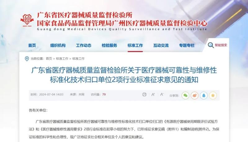 近日,廣東省醫(yī)療器械質(zhì)量監(jiān)督檢驗所發(fā)布《有源醫(yī)療器械使用期限評價試驗方法》和《醫(yī)療器械維修性通用要求》2項行業(yè)標(biāo)準(zhǔn)的征求意見稿,并向社會公開征求意見。