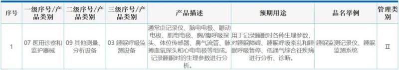睡眠呼吸監(jiān)測儀在我國作為第二類醫(yī)療器械管理,其產(chǎn)品描述如下:“通常由記錄儀、腦電電極、眼動(dòng)電極、肌電電極、胸/腹呼吸探頭、體位傳感器、鼻氣流管、脈搏血氧探頭和心電電極等組成。記錄睡眠時(shí)的生理參數(shù)進(jìn)行分析”,預(yù)期用途為“用于記錄睡眠時(shí)各種生理參數(shù),對睡眠障礙、睡眠呼吸紊亂和睡眠呼吸暫停、低通氣綜合征疾病進(jìn)行分析、診斷”,常見名稱還有“睡眠監(jiān)測記錄儀”“睡眠監(jiān)測系統(tǒng)”等,分類編碼07-09-03。