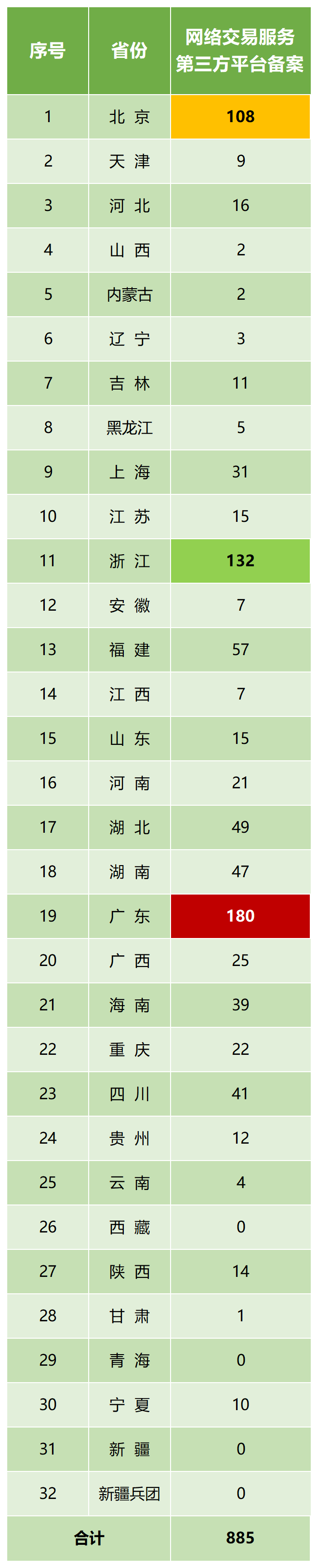 據(jù)國家藥監(jiān)局統(tǒng)計(jì),截至2024年6月30日,我國各省醫(yī)療器械醫(yī)療器械網(wǎng)絡(luò)交易服務(wù)第三方平臺(tái)數(shù)據(jù)如下: