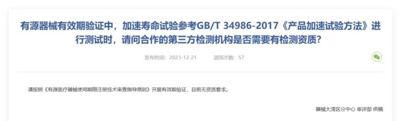 根據(jù)國家藥監(jiān)局醫(yī)療器械技術(shù)審評檢查大灣區(qū)分中心的答復(fù),加速老化試驗(yàn)?zāi)壳?strong style="margin: 0px; padding: 0px; outline: 0px; max-width: 100%; box-sizing: border-box !important; overflow-wrap: break-word !important;">無資質(zhì)要求,按照《有源醫(yī)療器械使用期限注冊技術(shù)審查指導(dǎo)原則》開展有效期驗(yàn)證即可。