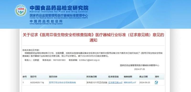 近日,國家藥監(jiān)局醫(yī)療器械標(biāo)準(zhǔn)管理中心發(fā)布《醫(yī)用Ⅱ級生物安全柜核查指南》醫(yī)療器械行業(yè)標(biāo)準(zhǔn)的征求意見稿,用以代替YY/T 1540-2017,并向社會(huì)公開征求意見。