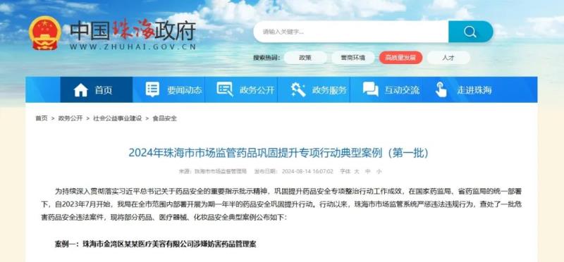 2024年5月,珠海市金灣區(qū)市場(chǎng)監(jiān)督管理局依法對(duì)某某昂醫(yī)療美容有限公司使用未依法注冊(cè)第三類醫(yī)療器械醫(yī)療器械的違法行為,責(zé)令當(dāng)事人改正違法行為,作出沒(méi)收違法所得、涉案物品和罰款的行政處罰。