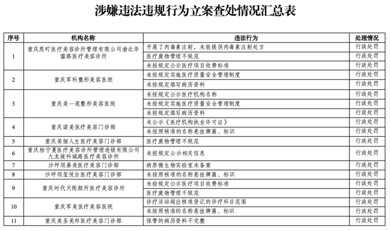 重慶市11家醫(yī)美機構(gòu)被立案查處