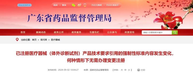 上述兩種情形下,產(chǎn)品技術(shù)要求不發(fā)生變化或者僅更新引用的標準編號和/或年代號,無需辦理變更注冊。
