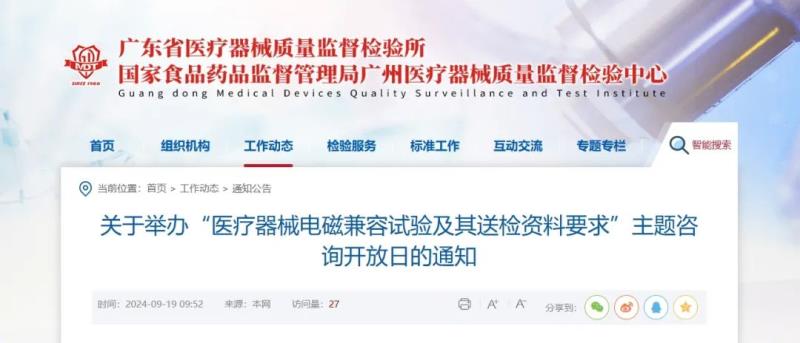 近日,廣東省醫(yī)療器械質(zhì)量監(jiān)督檢驗(yàn)所官網(wǎng)發(fā)布通知,定于9月26日(周四)舉辦“醫(yī)療器械電磁兼容檢驗(yàn)及其送檢資料要求”線上主題咨詢(xún)開(kāi)放日活動(dòng),具體時(shí)間及參會(huì)方式如下: