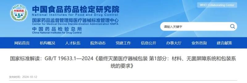 近日,中檢院官網(wǎng)發(fā)布了對(duì)國(guó)家標(biāo)準(zhǔn)GB/T 19633.1-2024《最終滅菌醫(yī)療器械包裝 第1部分:材料、無菌屏障系統(tǒng)和包裝系統(tǒng)的要求》的解讀,我們將其轉(zhuǎn)載如下: