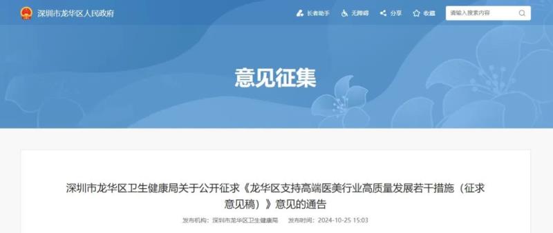近日,深圳市龍華區(qū)衛(wèi)生健康局發(fā)布《龍華區(qū)支持高端醫(yī)美行業(yè)高質(zhì)量發(fā)展若干措施(征求意見(jiàn)稿)》(以下簡(jiǎn)稱(chēng)《若干措施》),并向社會(huì)公開(kāi)征求意見(jiàn)。