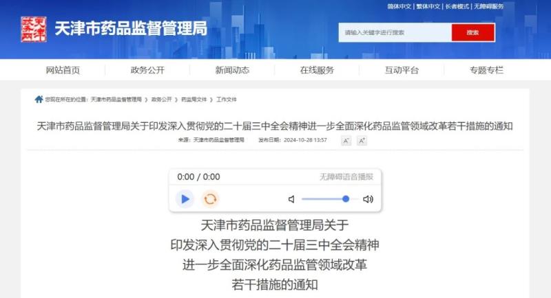 近日,天津市藥監(jiān)局發(fā)布《深入貫徹黨的二十屆三中全會(huì)精神進(jìn)一步全面深化藥品監(jiān)管領(lǐng)域改革若干措施的通知》(以下簡稱《若干措施》),以落實(shí)天津市委十二屆六次全會(huì)和國家藥監(jiān)局全面深化改革部署要求,全鏈條支持生物醫(yī)藥產(chǎn)業(yè)高質(zhì)量發(fā)展,全生命周期保障藥品高水平安全,全方位加強(qiáng)高效能監(jiān)管和高素質(zhì)專業(yè)化干部隊(duì)伍建設(shè)?!度舾纱胧芬愿帽Wo(hù)和促進(jìn)人民健康為目標(biāo),共制定4個(gè)方面27條深化藥品監(jiān)管領(lǐng)域改革具體措施。