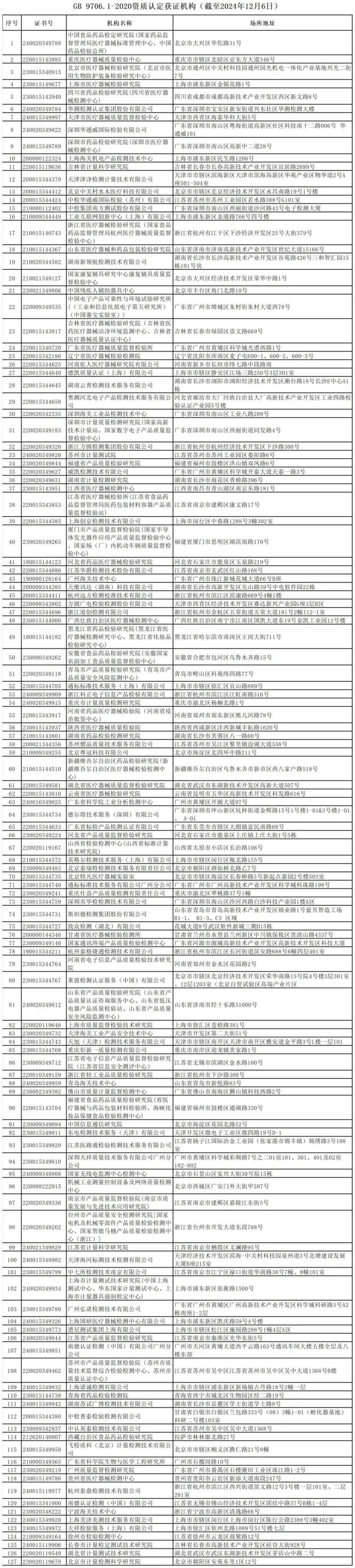 ↑ GB 9706.1-2020資質(zhì)認(rèn)定獲證機(jī)構(gòu)明細(xì)