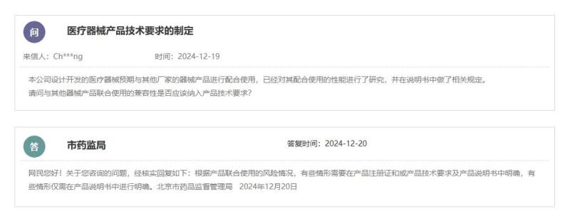 根據(jù)北京市藥監(jiān)局的答復,根據(jù)產(chǎn)品聯(lián)合使用的風險情況,有些情形需要在產(chǎn)品注冊證和或產(chǎn)品技術(shù)要求及產(chǎn)品說明書中明確,有些情形僅需在產(chǎn)品說明書中進行明確。