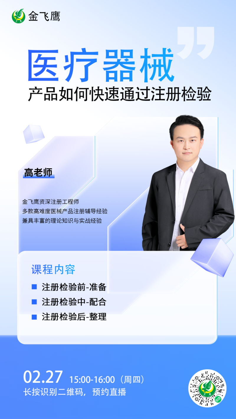 金飛鷹直播培訓(xùn)簡介 金飛鷹直播培訓(xùn),是每周一次的固定培訓(xùn)欄目,優(yōu)選金飛鷹國內(nèi)外資深注冊/項目老師定期為大家講解醫(yī)療器械注冊相關(guān)知識,解答大家在醫(yī)療器械注冊過程中的諸多疑問。 此前我們已為大家?guī)硇掳驷t(yī)療器械生物學(xué)評價標(biāo)準(zhǔn)、新版醫(yī)療器械風(fēng)險管理標(biāo)準(zhǔn)、醫(yī)療器械軟件注冊、醫(yī)療器械質(zhì)量管理體系提升技巧等共計112次線上培訓(xùn)課程,有興趣的可點擊視頻號直播回放進(jìn)行查看~另外大家也一定很關(guān)注接下來的培訓(xùn)主題,相關(guān)培訓(xùn)預(yù)告我們會陸續(xù)添加至視頻號,請大家持續(xù)關(guān)注哦!