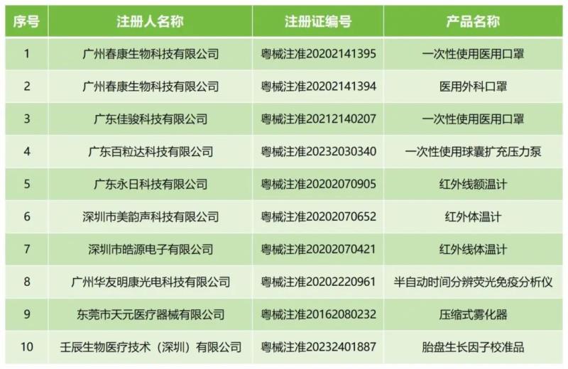 2月25日,廣東藥監(jiān)局發(fā)布通告稱,廣州春康生物科技有限公司、廣東佳駿科技有限公司等9家注冊(cè)人向廣東省藥品監(jiān)督管理局主動(dòng)提出注銷產(chǎn)品注冊(cè)證的申請(qǐng)。根據(jù)《醫(yī)療器械監(jiān)督管理?xiàng)l例》的規(guī)定,現(xiàn)對(duì)該9家注冊(cè)人持有的10張《醫(yī)療器械注冊(cè)證》依法予以注銷,主要包括醫(yī)用口罩、紅外體溫計(jì)、壓縮式霧化器等產(chǎn)品,具體明細(xì)如下: