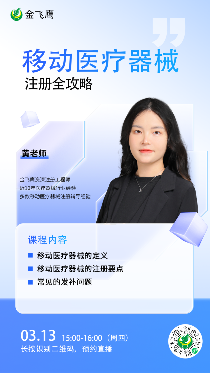 金飛鷹直播培訓簡介 金飛鷹直播培訓,是每周一次的固定培訓欄目,優(yōu)選金飛鷹國內(nèi)外資深注冊/項目老師定期為大家講解醫(yī)療器械注冊相關知識,解答大家在醫(yī)療器械注冊過程中的諸多疑問。 此前我們已為大家?guī)硇掳驷t(yī)療器械生物學評價標準、新版醫(yī)療器械風險管理標準、醫(yī)療器械軟件注冊、醫(yī)療器械質(zhì)量管理體系提升技巧等共計114次線上培訓課程,有興趣的可點擊視頻號直播回放進行查看~另外大家也一定很關注接下來的培訓主題,相關培訓預告我們會陸續(xù)添加至視頻號,請大家持續(xù)關注哦!