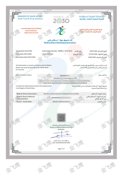 金飛鷹成功輔導(dǎo)深圳一家企業(yè)取得美容面罩的沙特上市許可