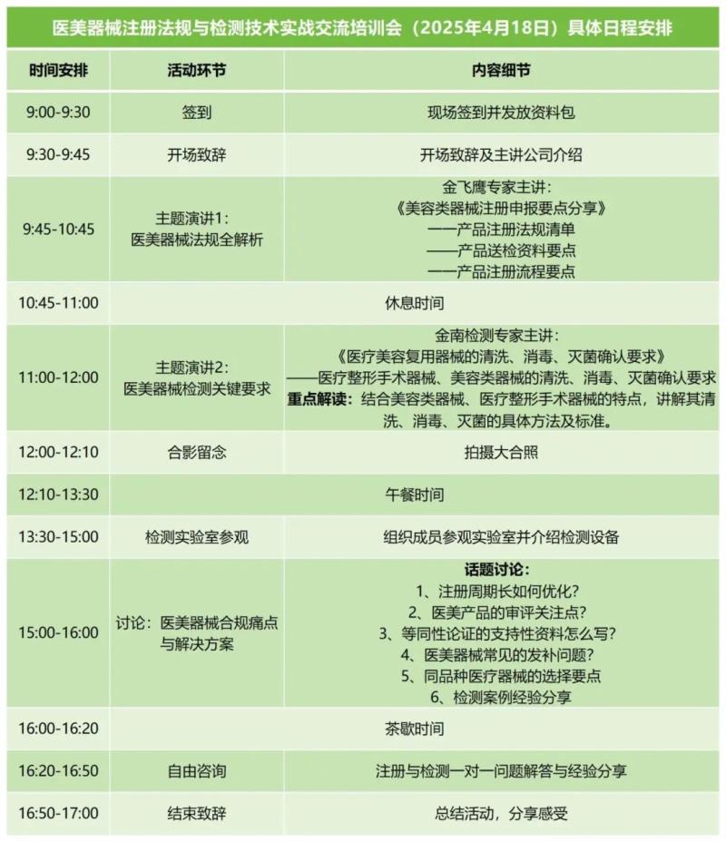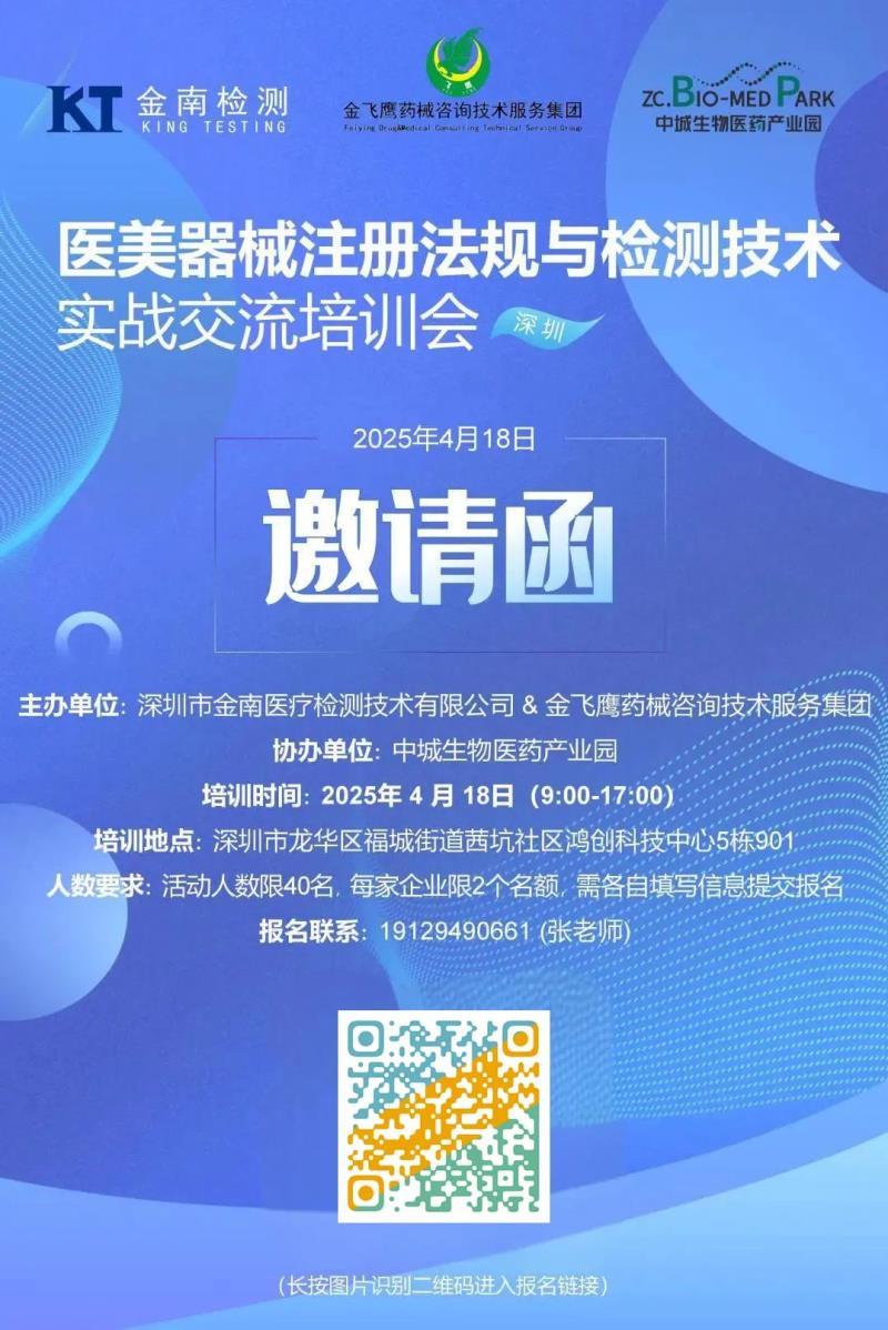 為幫助企業(yè)提升合規(guī)能力,保障產(chǎn)品質(zhì)量,促進(jìn)醫(yī)療美容行業(yè)的健康發(fā)展,金飛鷹聯(lián)合金南檢測共同策劃了“美容類器械注冊申報與重用器械處理規(guī)范”培訓(xùn)活動,深入解析注冊申報要點和重復(fù)使用器械處理要求,誠邀各美容類醫(yī)療器械企業(yè)報名參加!