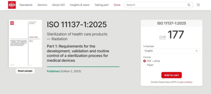 近日,國際標準化組織發(fā)布了有關醫(yī)療保健產(chǎn)品輻射滅菌的新版標準ISO 11137-1:2025 Sterilization of health care products — Radiation — Part 1: Requirements for the development, validation and routine control of a sterilization process for medical devices,通過查看ISO官網(wǎng)發(fā)布的標準樣本,我們給大家整理了本次標準主要更新內容: