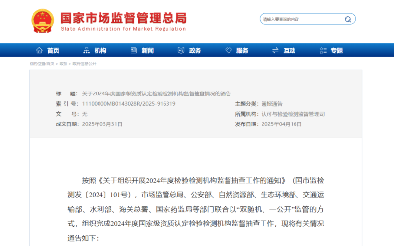 近日,國家市場監(jiān)督管理總局對2024年度國家級資質(zhì)認(rèn)定檢驗(yàn)檢測機(jī)構(gòu)監(jiān)督抽查工作有關(guān)情況進(jìn)行通告,其中提到,本次監(jiān)督抽查將自然資源檢驗(yàn)檢測、生態(tài)環(huán)境監(jiān)測、機(jī)動(dòng)車檢驗(yàn)、水利水質(zhì)監(jiān)測、進(jìn)出口商品檢驗(yàn)、醫(yī)療器械防護(hù)用品檢驗(yàn)檢測、食品檢驗(yàn)、消防產(chǎn)品檢驗(yàn)檢測、建筑保溫材料檢驗(yàn)檢測、電動(dòng)自行車及蓄電池檢驗(yàn)檢測、化肥檢驗(yàn)檢測作為重點(diǎn)領(lǐng)域,共計(jì)抽查國家級資質(zhì)認(rèn)定檢驗(yàn)檢測機(jī)構(gòu)100家(含22家國家質(zhì)檢中心),其中重點(diǎn)領(lǐng)域機(jī)構(gòu)65家,其他領(lǐng)域機(jī)構(gòu)35家。