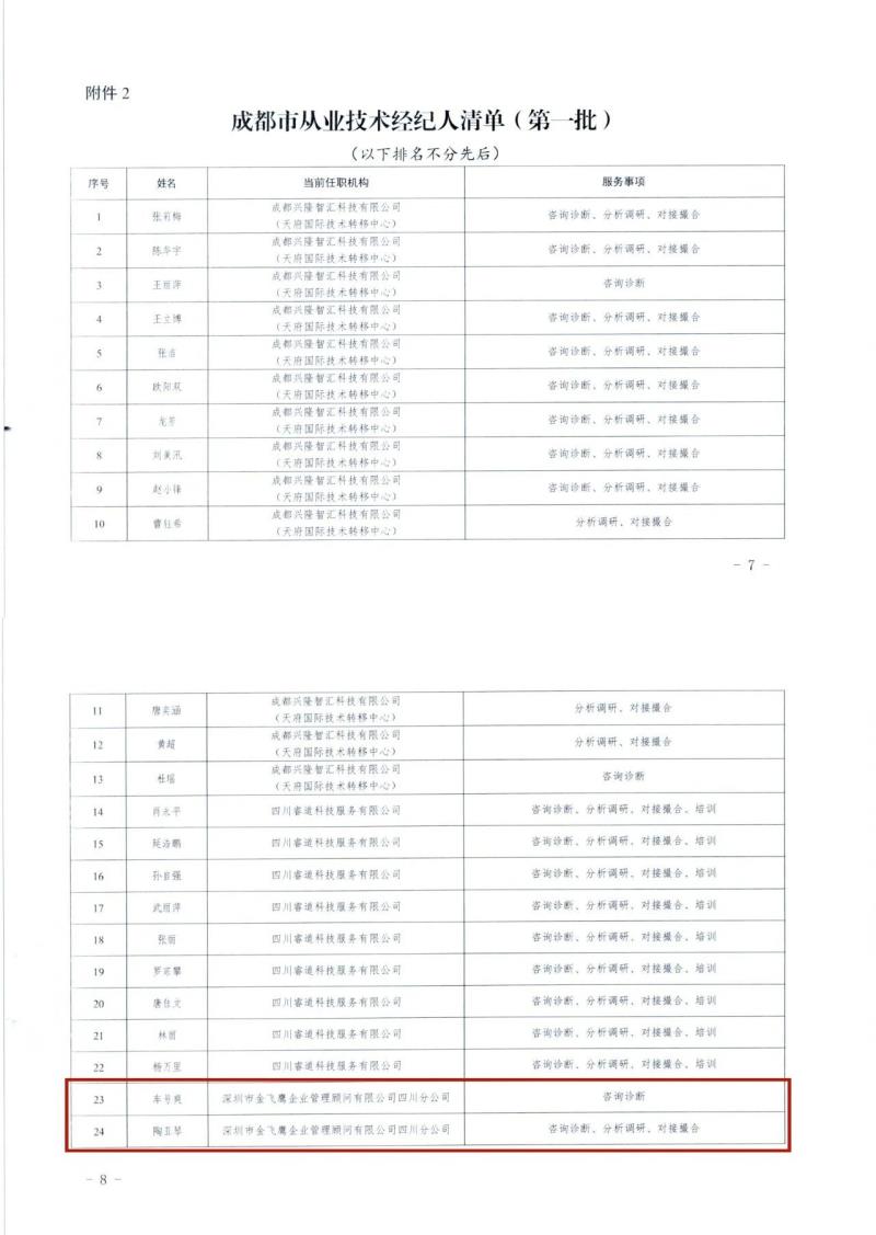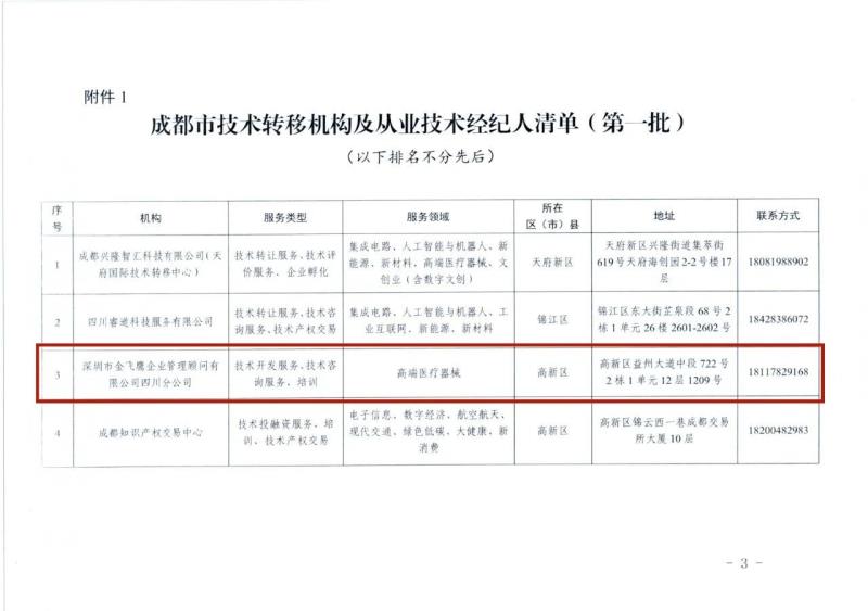 5月7日,成都市技術(shù)轉(zhuǎn)移聯(lián)盟通過其官方公眾號正式公布了2025年第一季度成都市技術(shù)轉(zhuǎn)移機(jī)構(gòu)及從業(yè)技術(shù)經(jīng)紀(jì)人名單。經(jīng)嚴(yán)格評審,深圳市金飛鷹企業(yè)管理顧問有限公司四川分公司成功入選20家技術(shù)轉(zhuǎn)移機(jī)構(gòu)之一,服務(wù)領(lǐng)域?yàn)?span textstyle="" style="font-weight: bold;">高端醫(yī)療器械。同時(shí),金飛鷹集團(tuán)創(chuàng)始人車號爽先生及四川分公司總經(jīng)理陶亞琴女士憑借其豐富的行業(yè)經(jīng)驗(yàn)和專業(yè)能力,則分別當(dāng)選為從業(yè)技術(shù)經(jīng)紀(jì)人,為聯(lián)盟企業(yè)提供咨詢診斷、分析調(diào)研、對接撮合等服務(wù)。