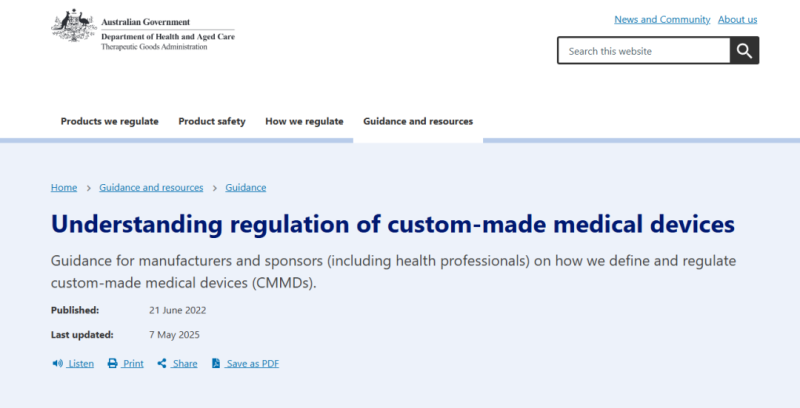 近日,澳大利亞TGA發(fā)布Understanding regulation of custom-made medical devices,從定制醫(yī)療器械的定義、法規(guī)概述、書面聲明、記錄保存要求、年報、廣告規(guī)則、不良事件報告、檢查和審查等方面分別進行了詳細闡述,旨在為制造商和申辦方(包括衛(wèi)生專業(yè)人員)提供關(guān)于TGA如何定義和監(jiān)管定制醫(yī)療器械的指南。
