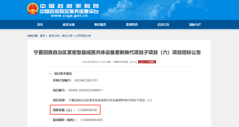 6月2日,中國政府采購網(wǎng)發(fā)布了《寧夏回族自治區(qū)緊密型縣域醫(yī)共體設備更新?lián)Q代項目子項目(六)項目招標公告》,125臺彩色多普勒超聲診斷儀采購大單啟動。