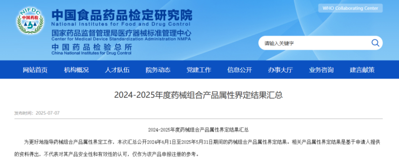 7月7日,中檢院匯總公開了2024年6月1日至2025年5月31日期間的藥械組合產(chǎn)品屬性界定結(jié)果,共包含78款產(chǎn)品,其中建議按照以藥品為主的藥械組合產(chǎn)品申請(qǐng)注冊(cè)有7款,建議按照以醫(yī)療器械為主的藥械組合產(chǎn)品申請(qǐng)注冊(cè)有47款,建議應(yīng)按藥品申請(qǐng)注冊(cè)的有22款,建議應(yīng)按醫(yī)療器械申請(qǐng)注冊(cè)有2款,具體明細(xì)如下: