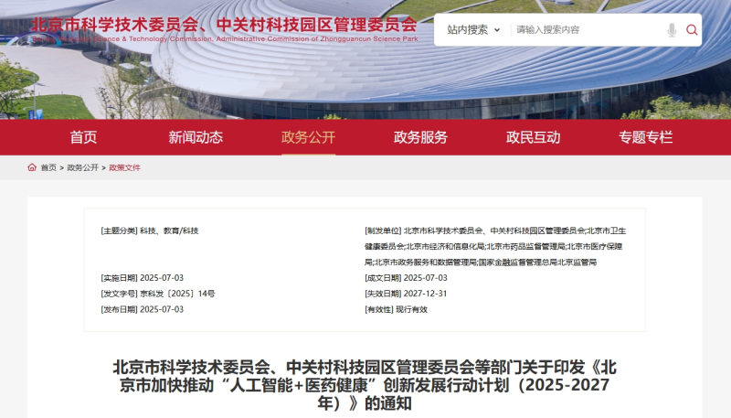 近日,北京市科學(xué)技術(shù)委員會、中關(guān)村科技園區(qū)管理委員會等多部門聯(lián)合發(fā)布《北京市加快推動“人工智能+醫(yī)藥健康”創(chuàng)新發(fā)展行動計(jì)劃(2025-2027年)》(以下簡稱《行動計(jì)劃》),從前沿研究、數(shù)據(jù)基礎(chǔ)、場景建設(shè)、產(chǎn)業(yè)生態(tài)4個維度部署了15項(xiàng)重點(diǎn)任務(wù),以加快培育醫(yī)藥健康產(chǎn)業(yè)新質(zhì)生產(chǎn)力,將北京打造成具有國際影響力的“人工智能+醫(yī)藥健康”創(chuàng)新高地。