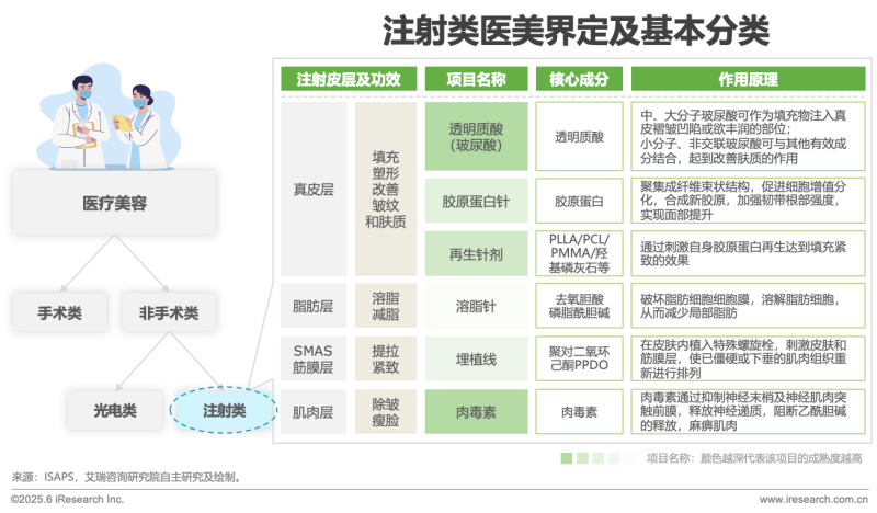 近年來,中國醫(yī)美市場呈現爆發(fā)式增長態(tài)勢,其中以聲光電類和注射類項目最受消費者青睞,已成為醫(yī)美消費的“雙引擎”。從市場表現來看,聲光電類項目市場份額略高于注射類項目,這類項目主要以緊致抗衰為主,多為無創(chuàng)/微創(chuàng)項目,以更“輕”的手段達到抗衰的目的吸引了更多消費者。但事實上,注射類項目同樣占據著舉足輕重的市場地位,為幫助行業(yè)從業(yè)者更深入了解注射類醫(yī)美市場,本期文章我們部分轉載了艾瑞咨詢的《中國注射類醫(yī)美行業(yè)研究報告》,以供相關企業(yè)參考。