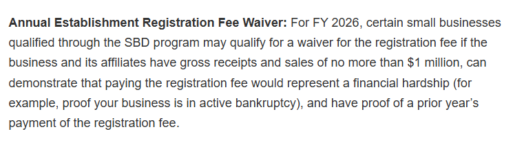 不過在費用普漲的同時,F(xiàn)DA也釋放出了給企業(yè)減負的信號:2026財年,FDA給小企業(yè)提供了 免年費 的選項,前提是這些企業(yè)證明支付費用會給他們帶來經(jīng)濟困難,具體條件如下: