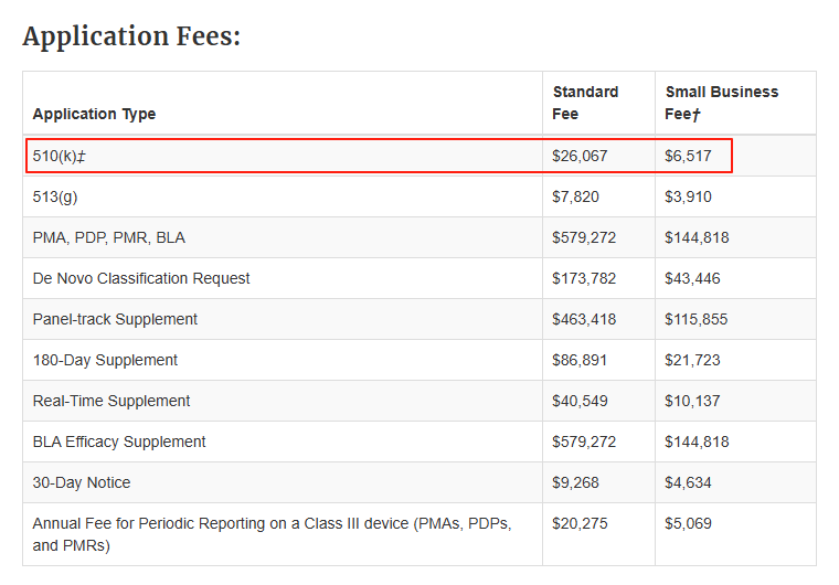 成功申請小企業(yè)資質(zhì)的企業(yè)可以省去大筆510(k)申請費用,但是小企業(yè)資質(zhì)的申請結果僅限本財年內(nèi)使用,舉例來說,假如企業(yè)現(xiàn)在申請,那么這一資質(zhì)的有效期就到2025年9月30日。
