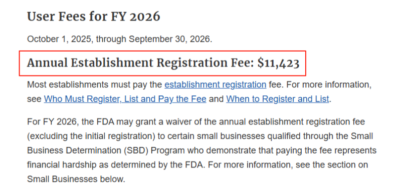 值得注意的是,2026財年的企業(yè)年費的繳納期限為2025年10月1日-12月31日期間,也就是說,必須在2025年12月31日前完成支付。產(chǎn)品需出口美國的醫(yī)療器械企業(yè)一定要注意及時繳納年費,完成注冊更新工作,以確保下一年持續(xù)處于有效狀態(tài)。