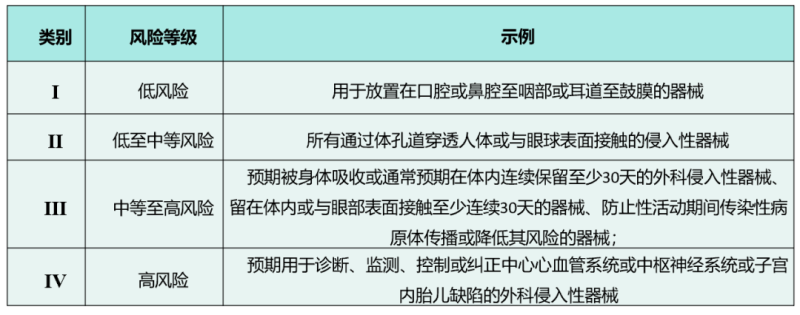 在《醫(yī)療器械注冊指南》中,加納FDA根據(jù)產(chǎn)品風(fēng)險(xiǎn)從低到高,將醫(yī)療器械分為Ⅰ、Ⅱ、Ⅲ、Ⅳ四個(gè)風(fēng)險(xiǎn)等級(jí)。下表列出了醫(yī)療器械的四個(gè)風(fēng)險(xiǎn)類別,企業(yè)可根據(jù)示例內(nèi)容對產(chǎn)品類別進(jìn)行大致判斷。另外在《醫(yī)療器械注冊指南》中,還列出了醫(yī)療器械分類的16條具體規(guī)則,根據(jù)這些規(guī)則可以更明確地判斷產(chǎn)品類別。