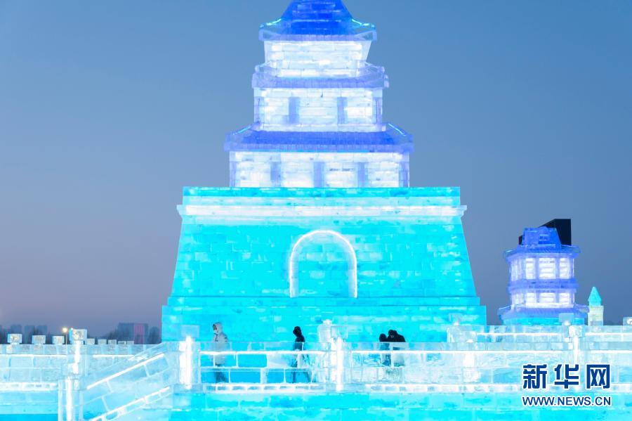 2021年1月1日,游客在哈爾濱冰雪大世界園區(qū)游玩。