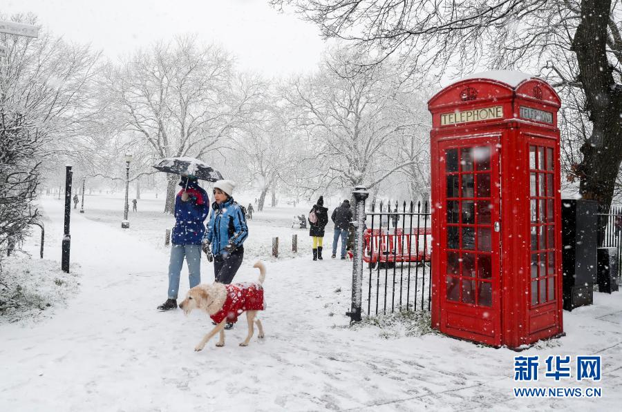 1月24日,人們在英國倫敦的大雪中行走。當(dāng)日,英國倫敦迎來降雪。新華社記者韓巖攝