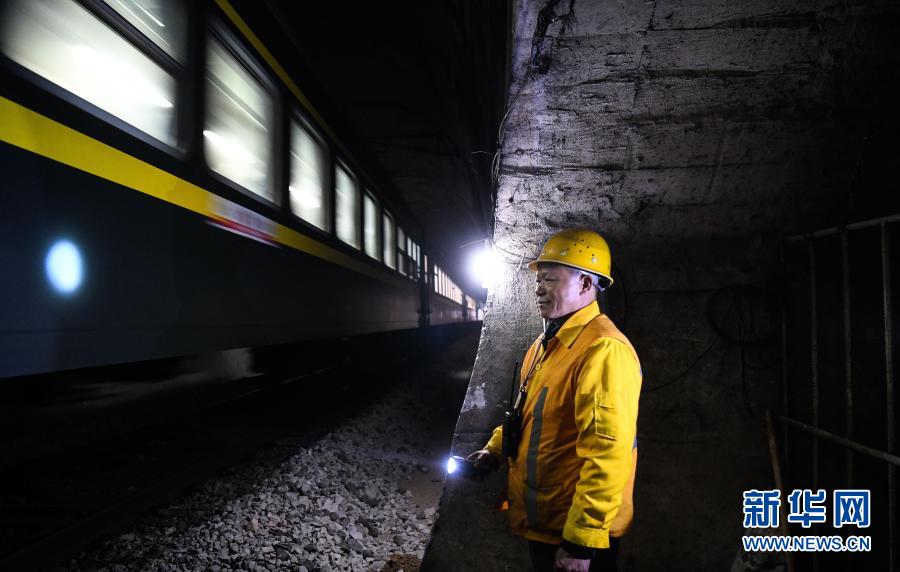 在廣西河池境內(nèi)黔桂鐵路線上的鄧山隧道,中國鐵路南寧局集團(tuán)有限公司柳州工務(wù)段的4名看守工輪換值班,依靠手電筒在黑暗中穿行,及時巡查隧道中可能出現(xiàn)的各種隱患,確保每天經(jīng)隧道運(yùn)行的59趟客貨列車春運(yùn)安全。鄧山隧道全長773米,是一個需要人員全天候看守的鐵路隧道。