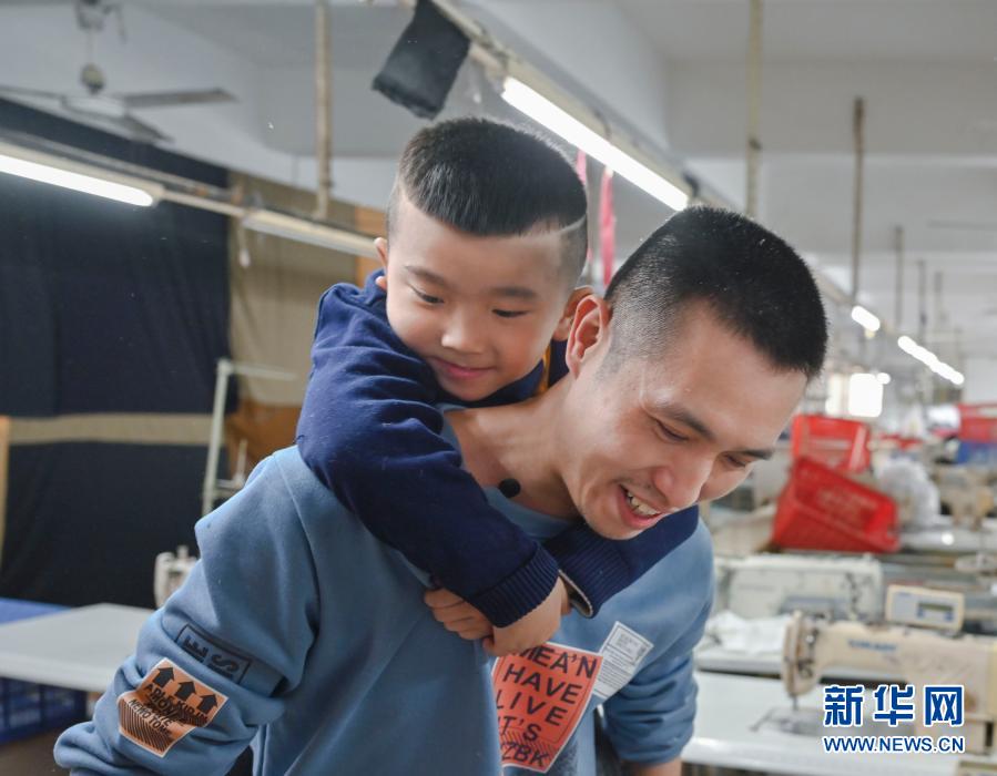 1月26日,在福建省石獅市的金利萊斯服裝廠,聰聰和黃海龍?jiān)谝黄稹?/p>