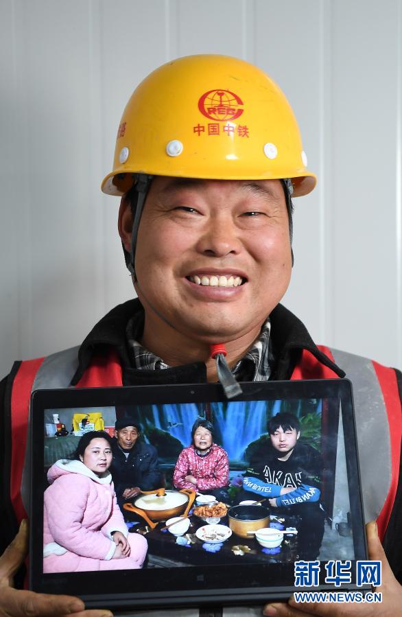 陳歡樂,40歲,安徽省濉溪縣人。“帶著大伙出來打工快一年了,就地過年,說不想家,那是假的,響應(yīng)國家政策嘛。過年工地上發(fā)肉發(fā)菜,還有節(jié)日補(bǔ)貼,你們在家放心吧,等忙完這段就回家?!边@是陳歡樂與家人照片的合影(2月4日攝)。