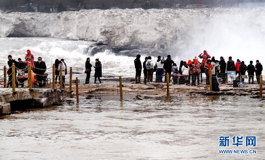 2月24日,游人在陜西壺口瀑布景區(qū)游覽。