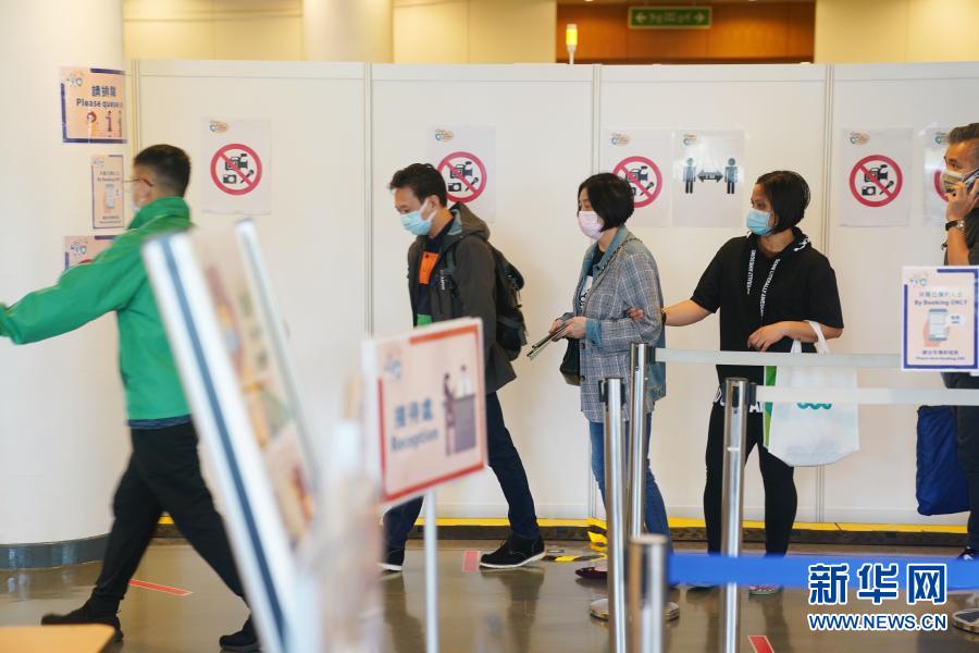 2月26日,在位于香港中央圖書館的社區(qū)疫苗接種中心內(nèi),市民排隊準(zhǔn)備接種疫苗。新華社記者 王申 攝