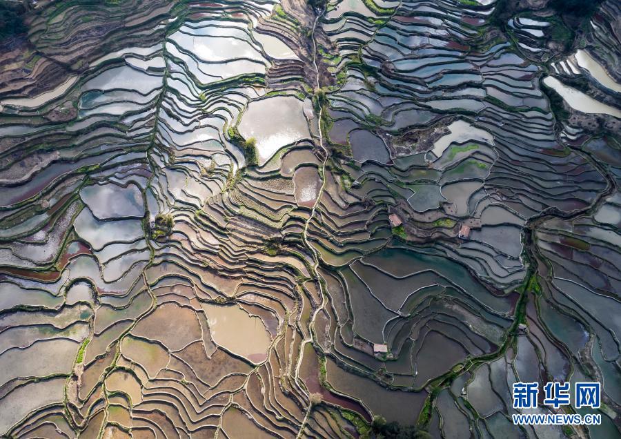 春日里,位于云南省紅河哈尼族彝族自治州元陽縣境內的哈尼梯田在不同光照條件下呈現(xiàn)出豐富色彩,與周邊村寨、山系等和諧相融,猶如一幅幅色彩斑斕的油畫,美不勝收。