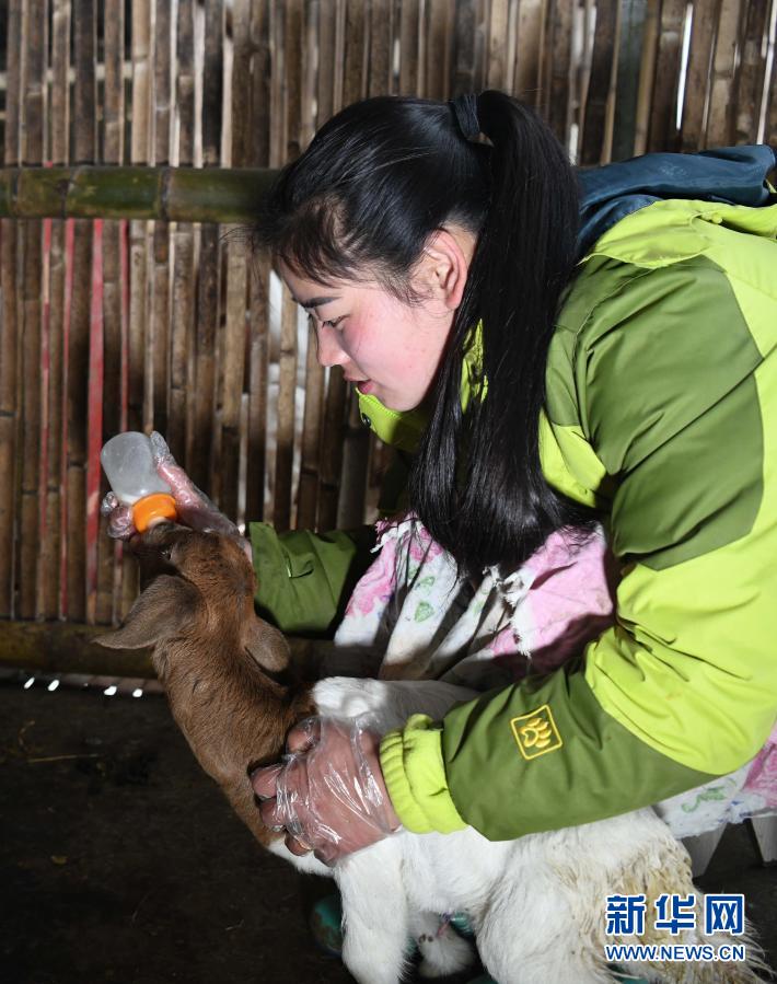 張志菊在自家農場里給小羊喂奶(2月27日攝)。